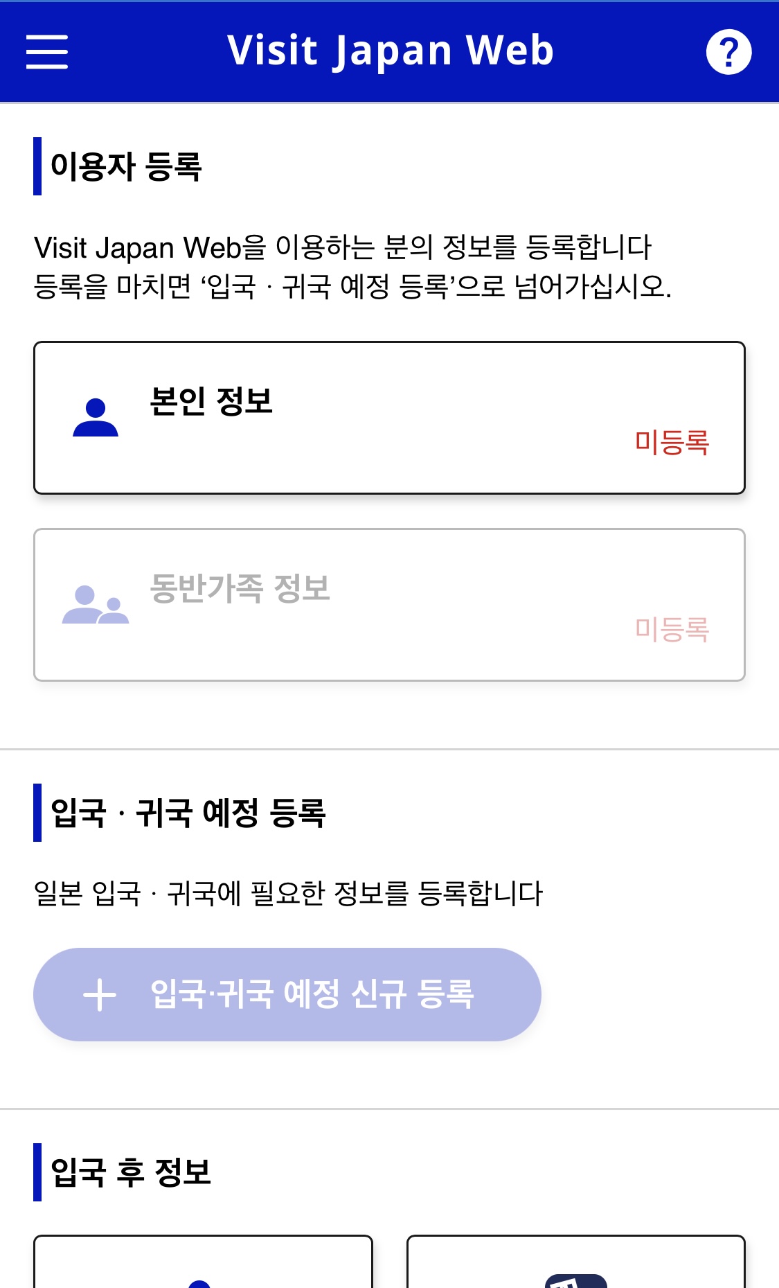 비짓재팬 웹을 통해 사전에 여행정보를 등록하면 QR코드를 사용해 신속하게 입국절차를 진행할 수 있습니다.