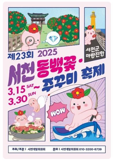 2025 봄을 알리는 서천 동백꽃 주꾸 미 축제가 3월 15일부터 충남 마량진항회원에서 열립니다